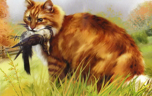 Воитель одним словом рыжий. На шерсти есть бурые полосы, а грудка с носочками белые. У кота пронзительные серые глаза, которые светятся мудростью и спокойствием. Длинный пушистый хвост с рыже-бурыми полосками его гордость! Зимой коту всегда тепло из-за его длинной шерсти, а в сезон Зеленых Деревьев ему жарко. Так же на спине у кота бурые пятна шерсти, как у матери. На свету кот кажется золотой статуей, которая пылает рыжем огнем. Еще невероятно сильный нюх у кота. Он лучший следопыт Клана Небесного Льда.